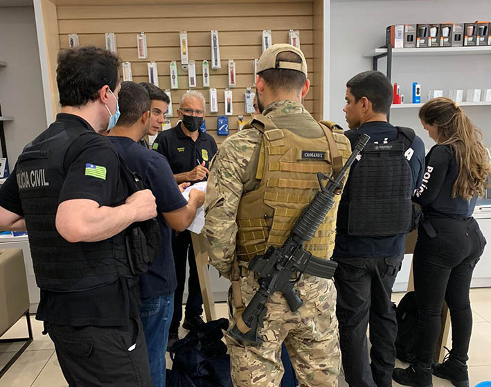 A Secretaria de Segurança Pública, através da Superintendência de Operações Integradas (SOI), Diretoria de Inteligência (DINT) e Grupo de Repressão ao Crime Organizado (GRECO), deflagrou na manhã desta quarta-feira(02) a Operação Interditados, para cumprir mandados de busca e apreensão e suspensão das atividades econômicas em lojas de revenda de aparelhos telefônicos em Teresina.