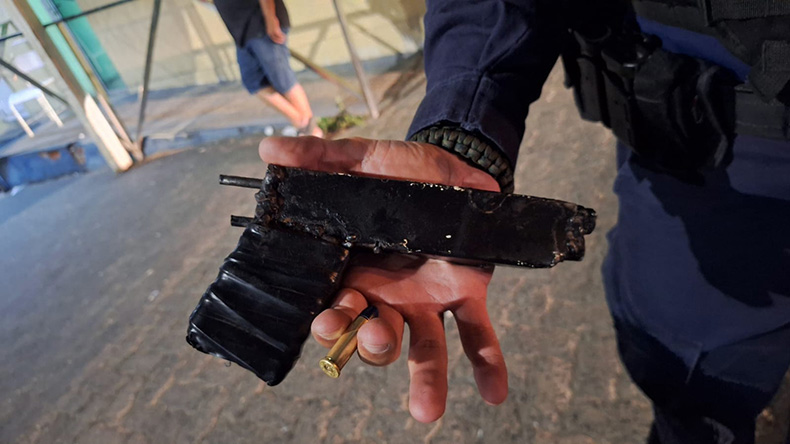 Com o suspeito foram apreendidos uma arma de fogo de fabricação caseira, calibre 38, com duas munições — uma deflagrada e outra intacta — e uma faca tipo peixeira com o cabo quebrado.