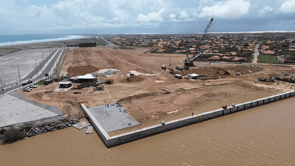 A terraplanagem do pátio do terminal foi concluída em setembro de 2024, já o cais tem sua execução alcançando cerca de 84% de avanço neste mês de janeiro. Na construção, já foram utilizados 110 toneladas de aço e 1000 metros cúbicos de concreto na execução de mais 150 metros da viga de bordo, essencial para a estruturação do cais pesqueiro.