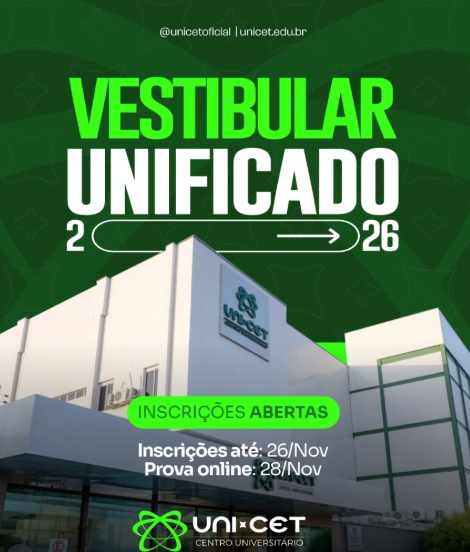 O UNI-CET lança o Vestibular Unificado 2026, com o tema “Grandes Jornadas Começam Aqui”, unindo tradição, inovação e tecnologia na formação de profissionais de excelência.