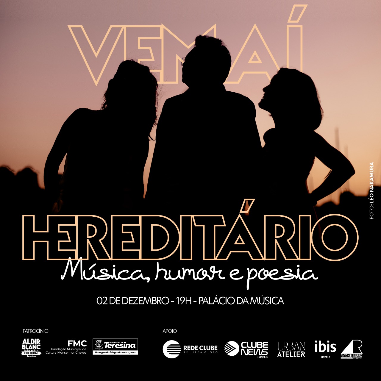 Pai, mãe, filha. Humor, música, poesia. João Cláudio Moreno, Patricia Mellodi, Clara Mello. Os três unidos pela primeira vez no mesmo palco. Porque o amor pela arte é Hereditário.