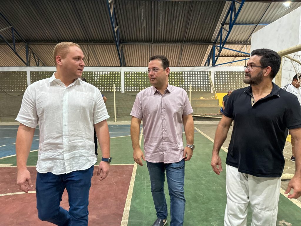 Vereador Venâncio visita Ginásio Pato Preto com secretária Sarah Menezes e Alan Brandão para discutir melhorias na estrutura