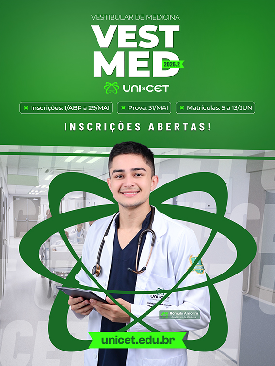 Mais informações: www.unicet.edu.br | (86) 99809-4377. Vestibular Medicina UNI-CET 2026.2 — UNI-CET, aqui você se torna mais que um futuro médico.