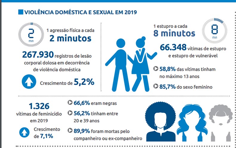 Houve registro de aumento nos índices de estrupro de vulnerável. Foram 625 casos em 2020 entre a faixa etária de 0 a 19 anos. Destes, 285 das vítimas tinham de 0 a 11 anos, 322 de 12 a 17 anos e 18 de 18 a 19 anos.