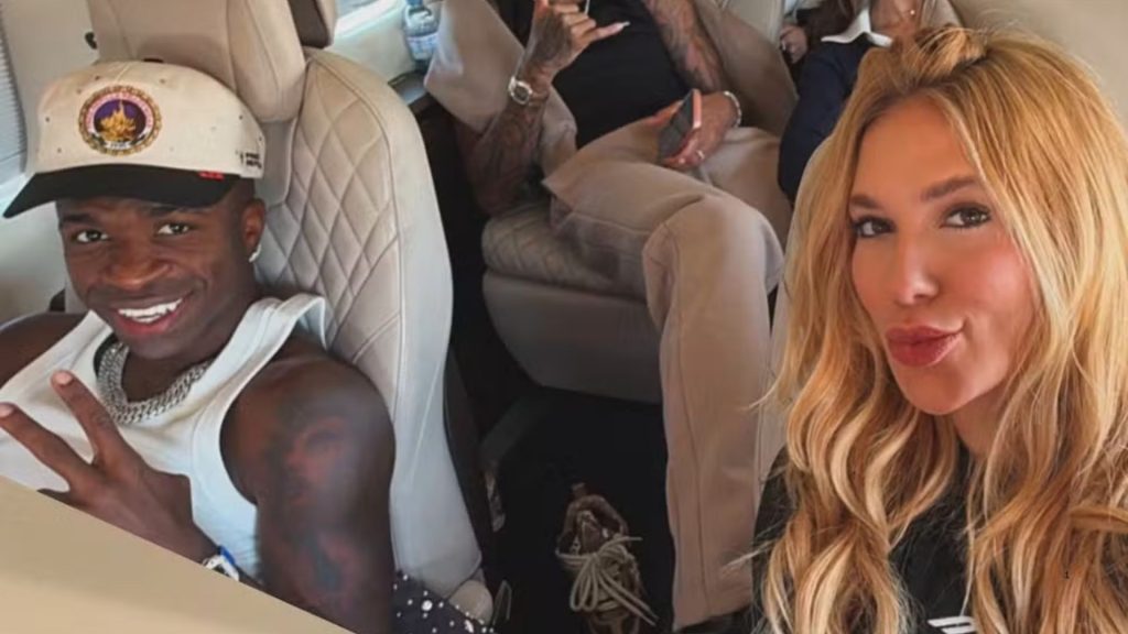 A influenciadora Virginia Fonseca, de 26 anos, e o jogador Vini Jr., de 25, surgiram juntos pela primeira vez sem esconder o rosto, em uma foto compartilhada nas redes sociais. O registro foi feito por Tainá Castro durante uma viagem de jatinho para Madri, na Espanha, na companhia de amigos.