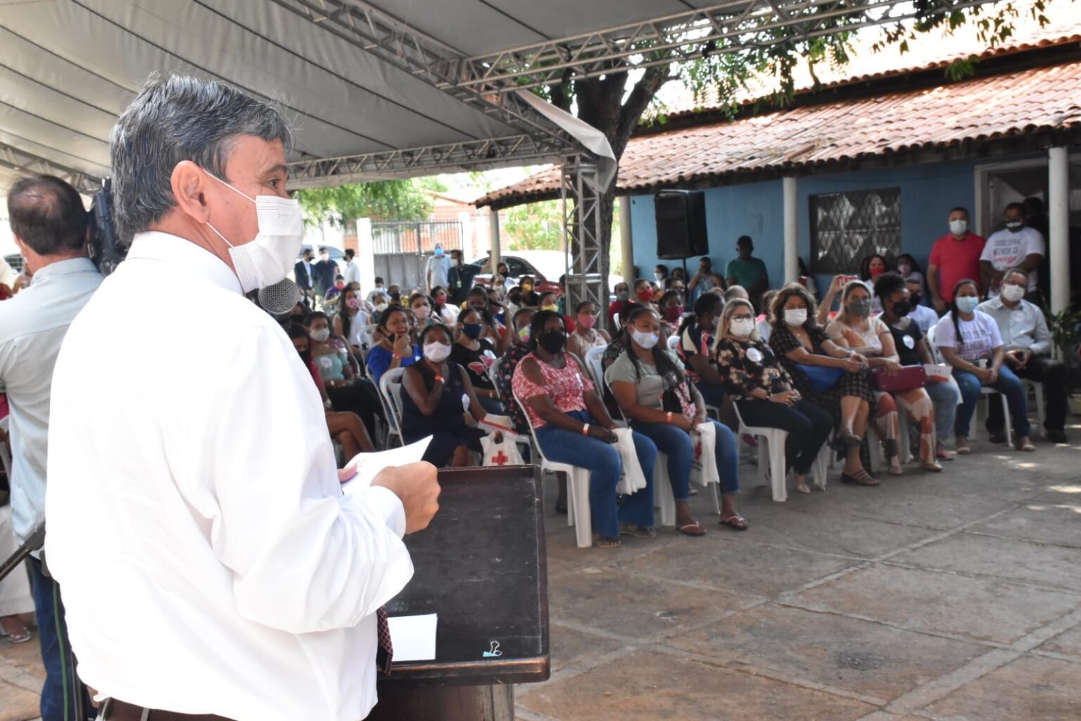 O governador Wellington Dias participou, nesta segunda-feira (27), da entrega de cartões com um valor em dinheiro para compra de alimentos, por meio do projeto de apoio à Segurança Alimentar, em parceria com a Cruz Vermelha Brasileira. O projeto irá beneficiar mais de 600 famílias em situação de vulnerabilidade social e a entrega foi realizada no pátio da Igreja Sagrado Coração de Jesus, no bairro Vila Irmã Dulce, em Teresina.